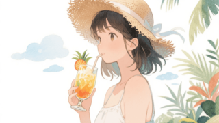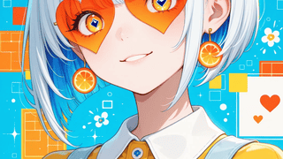 画像生成プロンプトA vibrant and whimsical illustration of a young girl with a bob haircut, large, expressive eyes, and round oran...